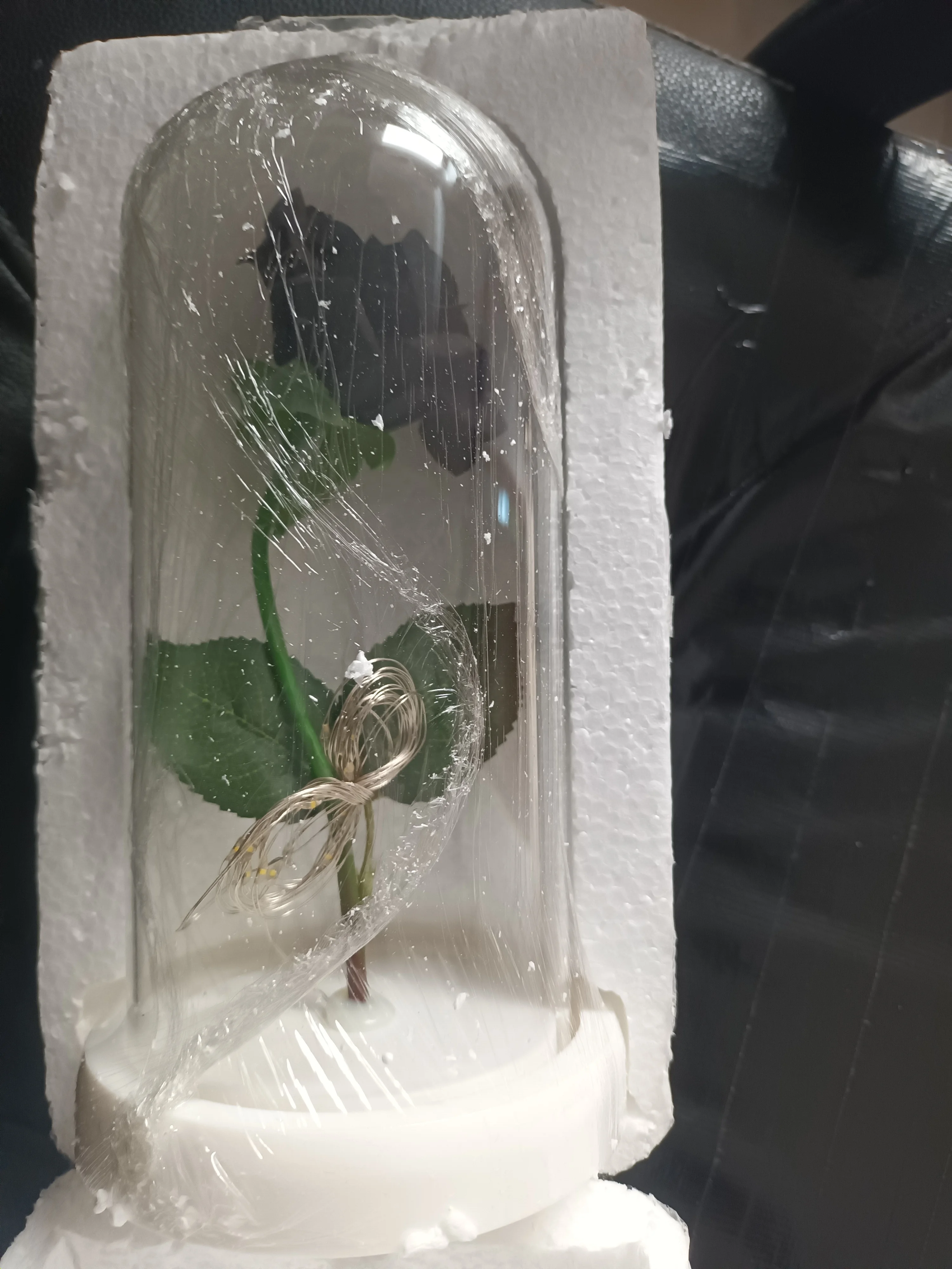 You need to put the thread with light according to your own taste, it arrives rolled up inside the capsule along with the rose.